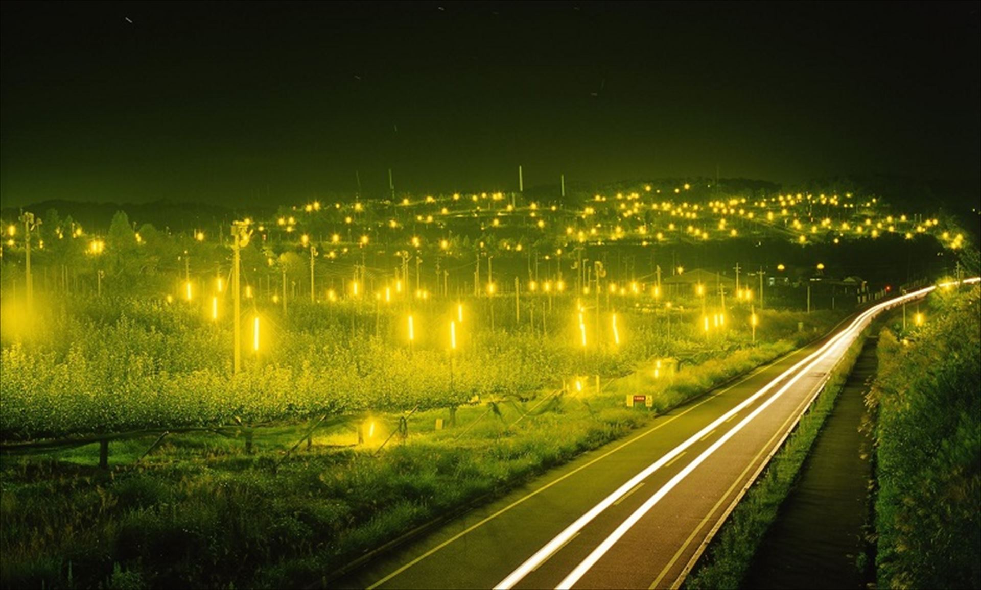 ●「果物と花の町」世羅町では、梨は町を代表する特産品の一つです。 特に赤梨の生産量は県内一となっており、8月中旬から幸水梨→豊水梨と続く、なし狩りを楽しむことができます。 また農園では、梨を害虫から守る防蛾灯の光が園内を染め、幻想的な光景も 10月初旬まで楽しめます。